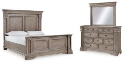 Bellaby King Crossbuck Panel Bed, Dresser, Mirror, and Nightstand