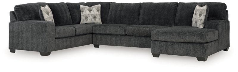 - Includes 8 modular pieces: left-arm facing corner chaise, 3 armless chairs, audio console with storage, console with storage, wedge and right-arm facing corner chaise