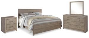 Realyn Queen Upholstered Panel Bed, Dresser, Mirror and 2 Nightstands