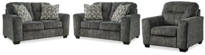 Rowanbeck Queen Upholstered Panel Bed, Dresser and Mirror